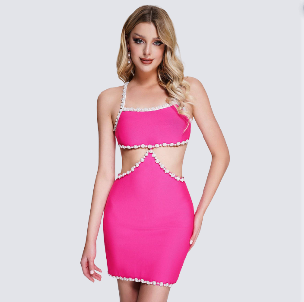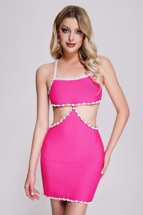 > Bella Pink Pearl Cut-Out Mini Bandage Dress – AMAGLAMOUR.COM